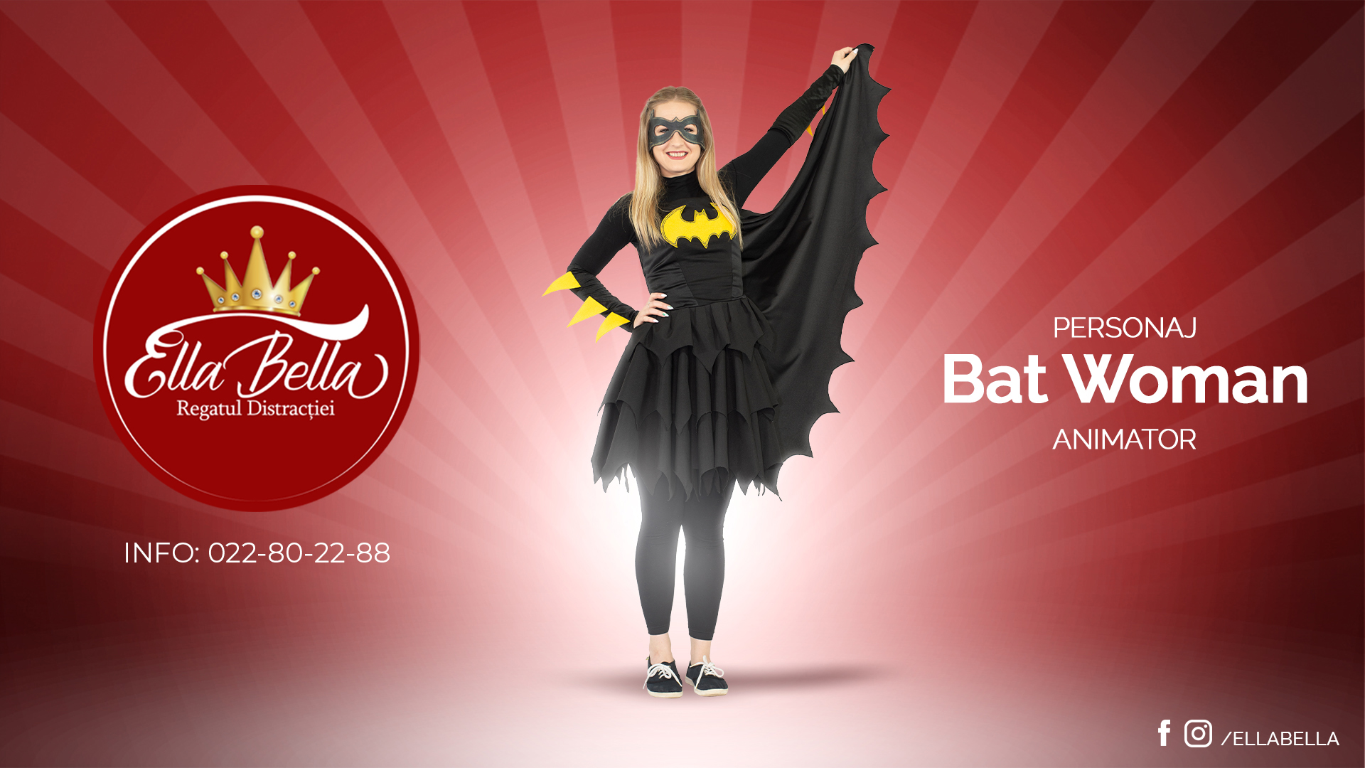 Încă o eroină a marelor ecrane este Batwoman. Femeia care cu puterele ei supranaturale și dragostea de oameni învinge nedreptatea. Prezența acestui personaj la petrecerea dstră va colora evenimentul prin jocuri, dansuri și cântece pentru copii.