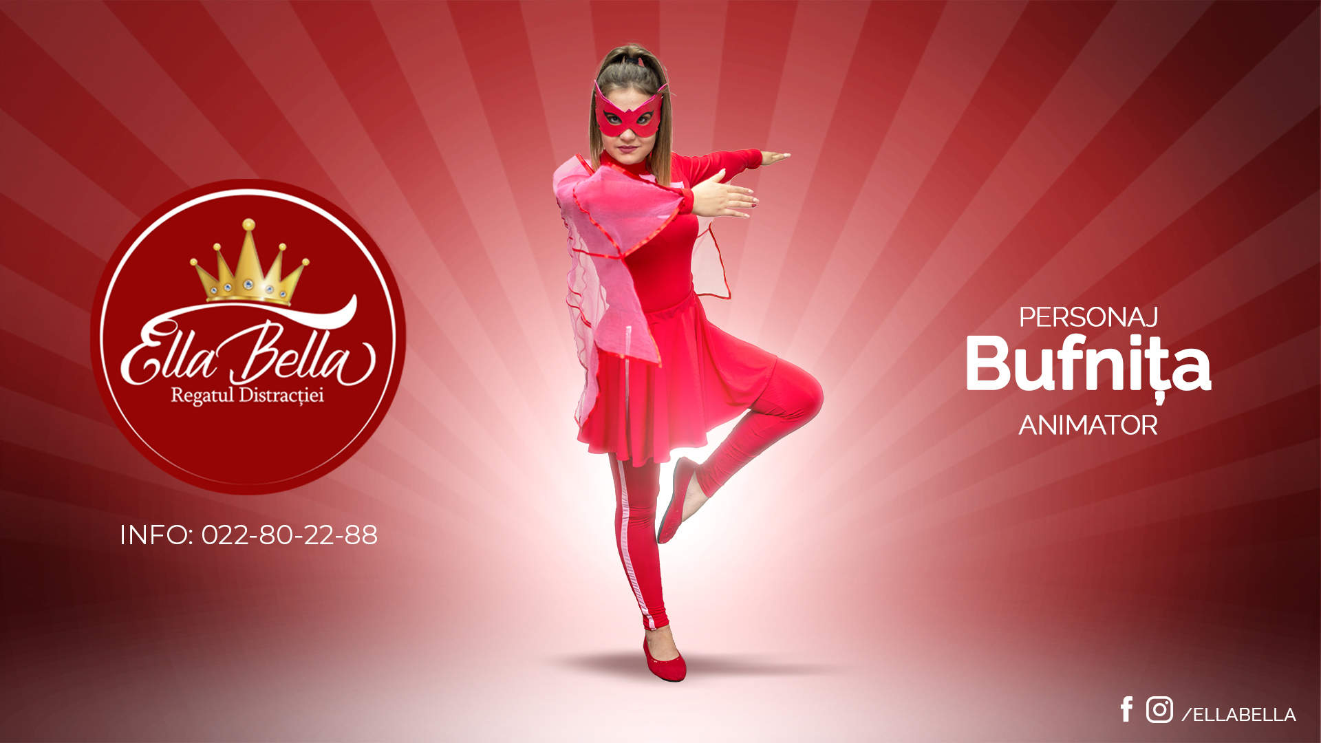 Prezența ei la petrecerea dstră va face evenimentul mult mai interesant pentru copii. Ea are în arsenalul ei numeroase provocări pentru copii, jocuri, cântece, dansuri și surprize. Copilul dstră se va simți și el un supererou.